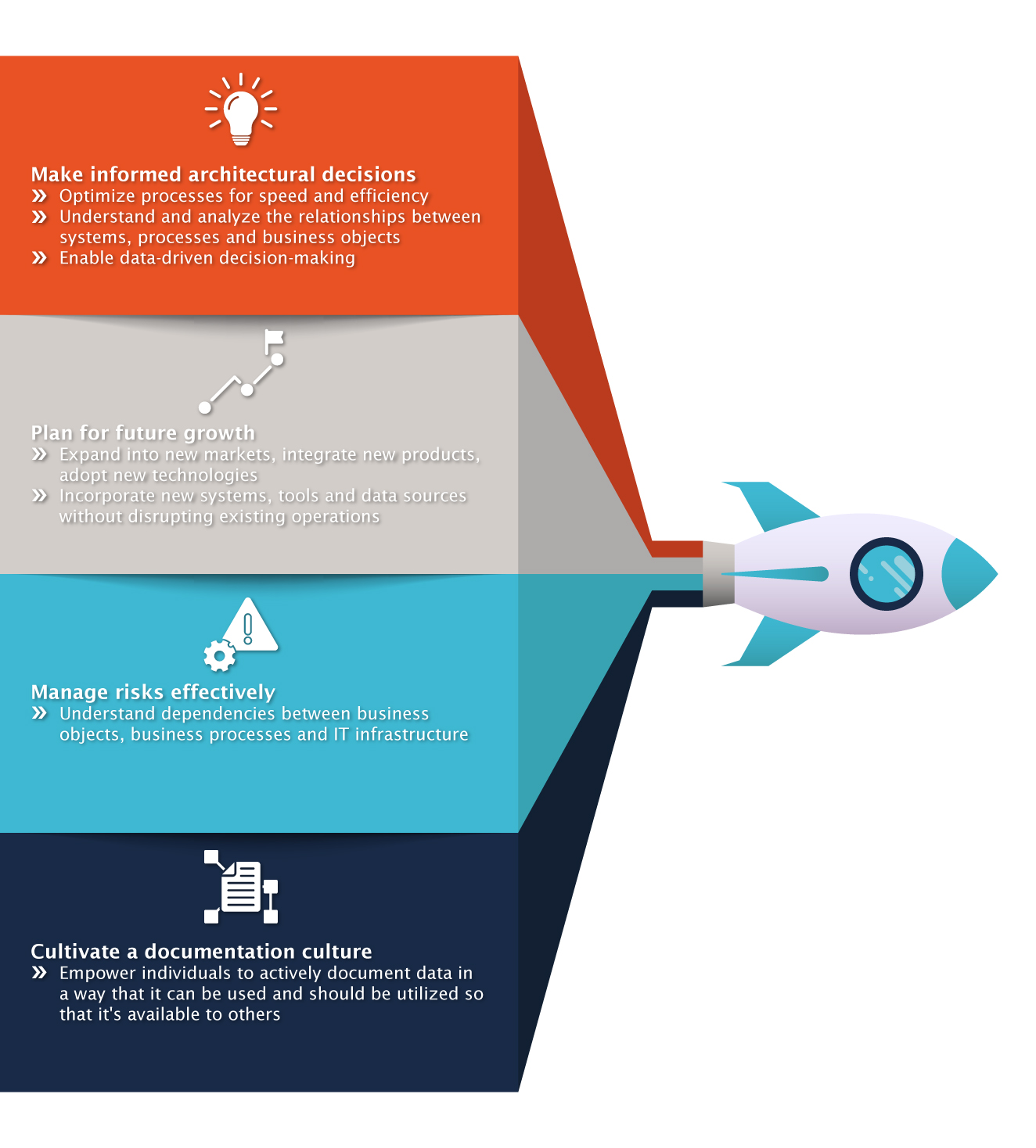 Beyond simply capturing (meta-)data, a semantic-driven EIA offers a bird’s eye view of all existing systems and processes, and focuses on capturing context that describes what the data is about, how it connects to the enterprise processes and its IT systems, why they are used and who is responsible for them.