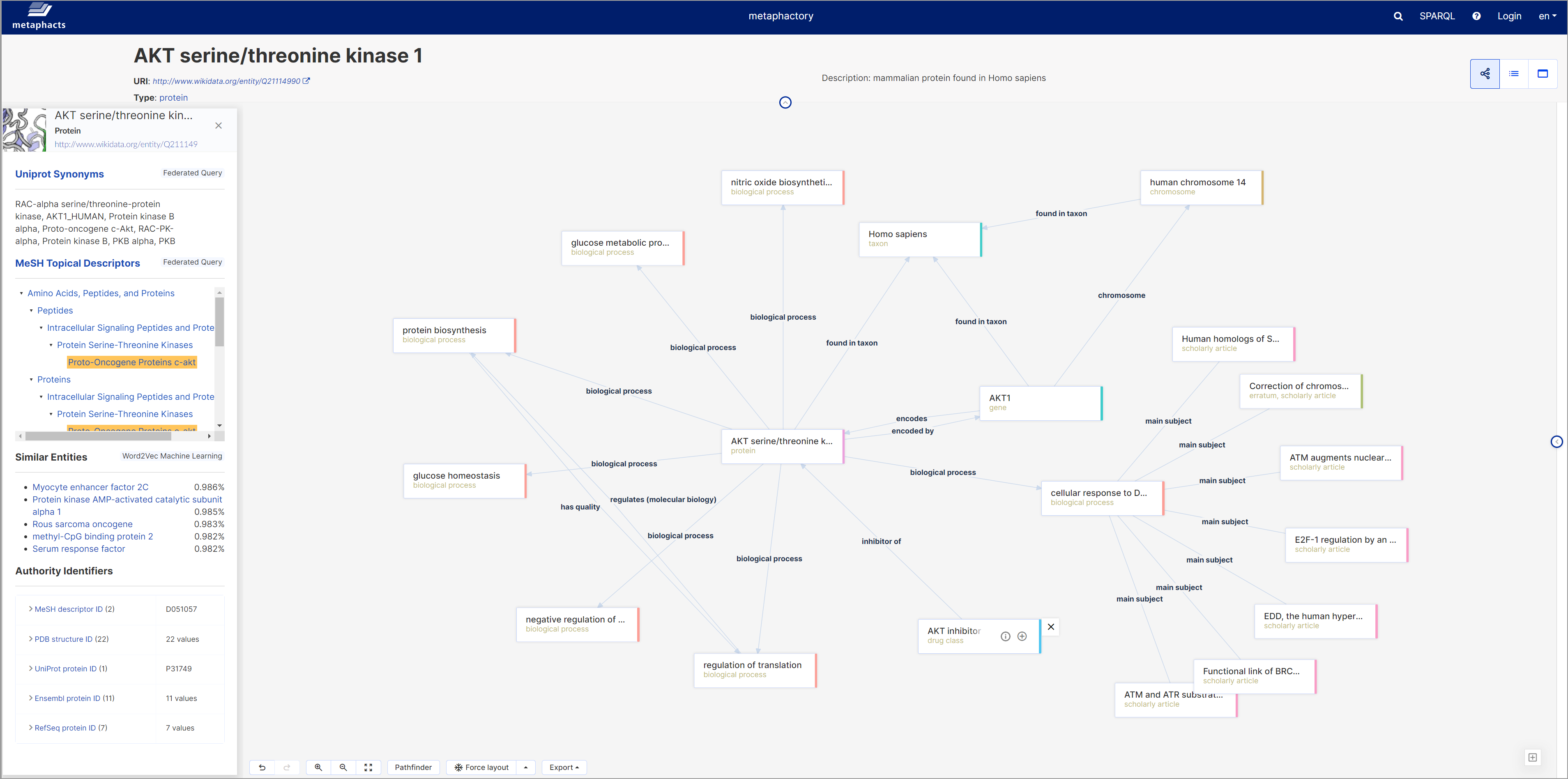 Image 1: Visual graph exploration of Wikidata information about the AKT serine/threonine kinase 1 protein