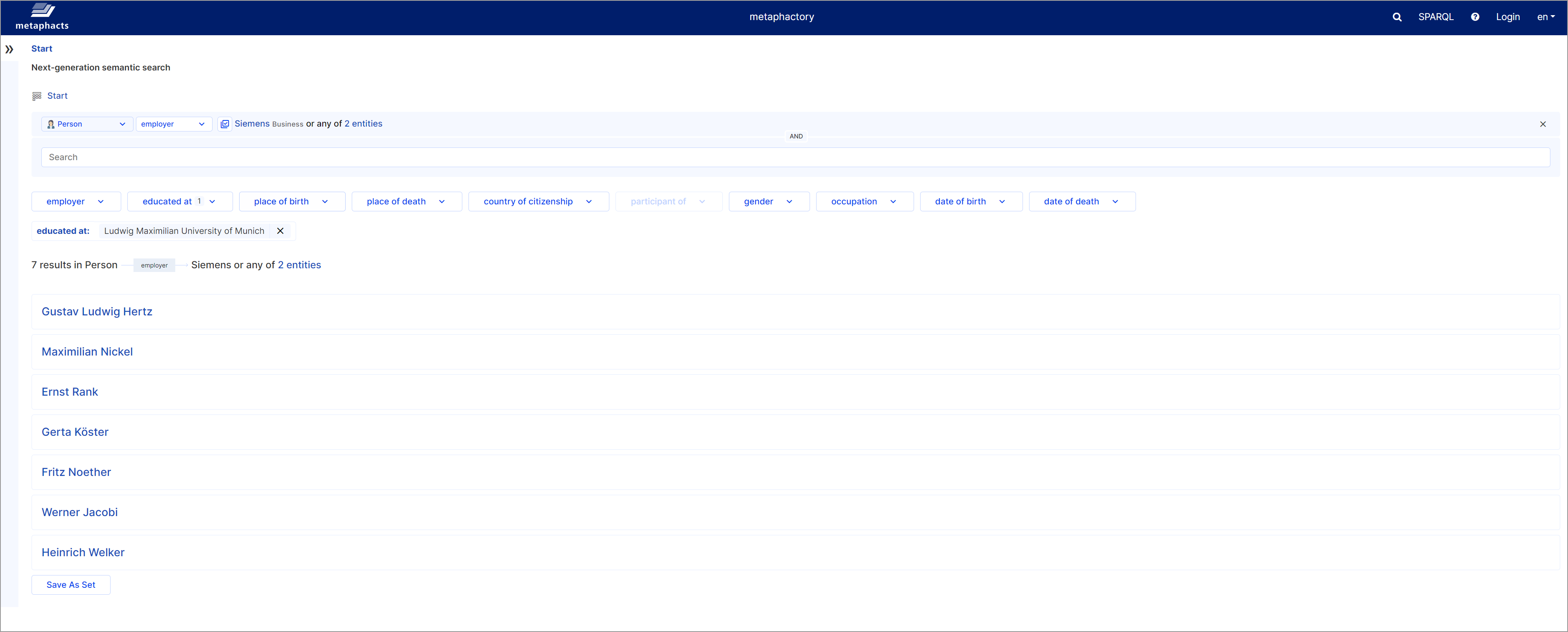 Image 3: Search result for persons related to one of three “Siemens” business entities and who have studied at the Ludwig Maximilian University of Munich